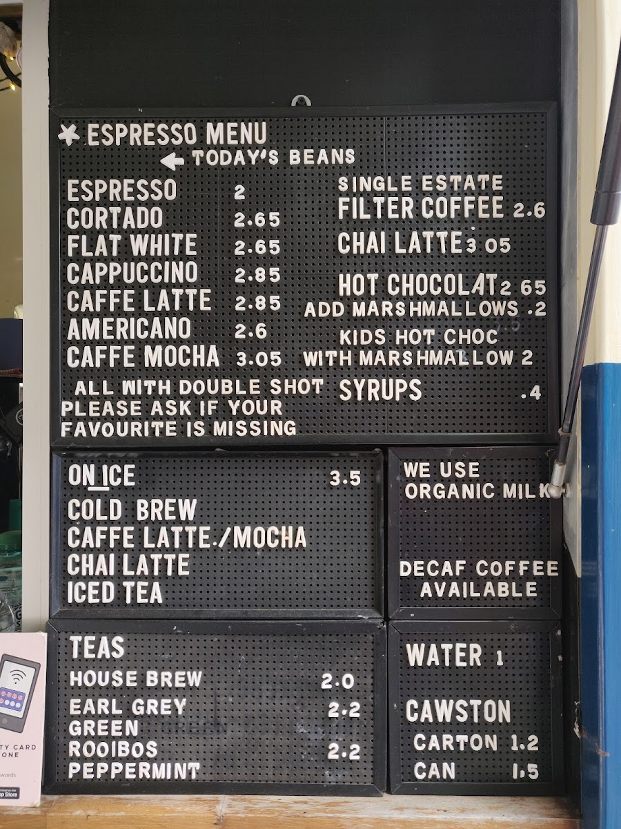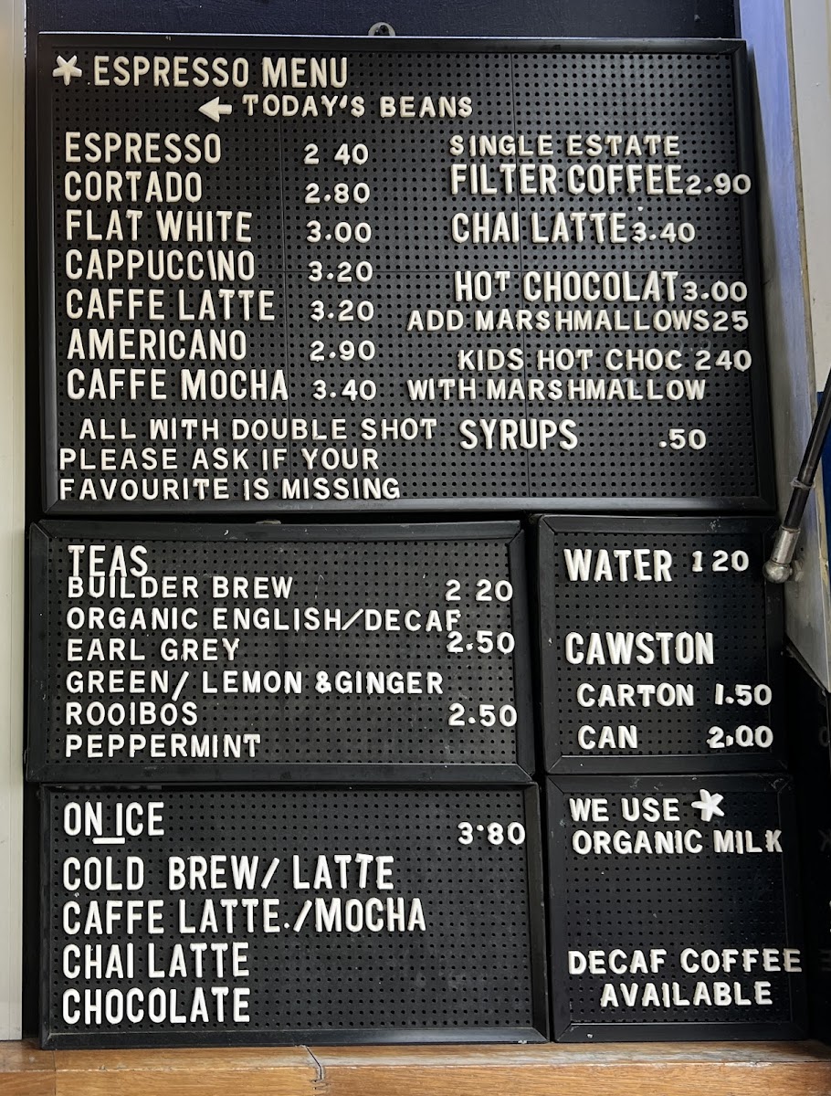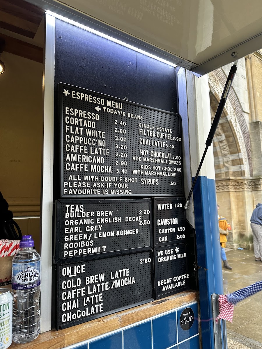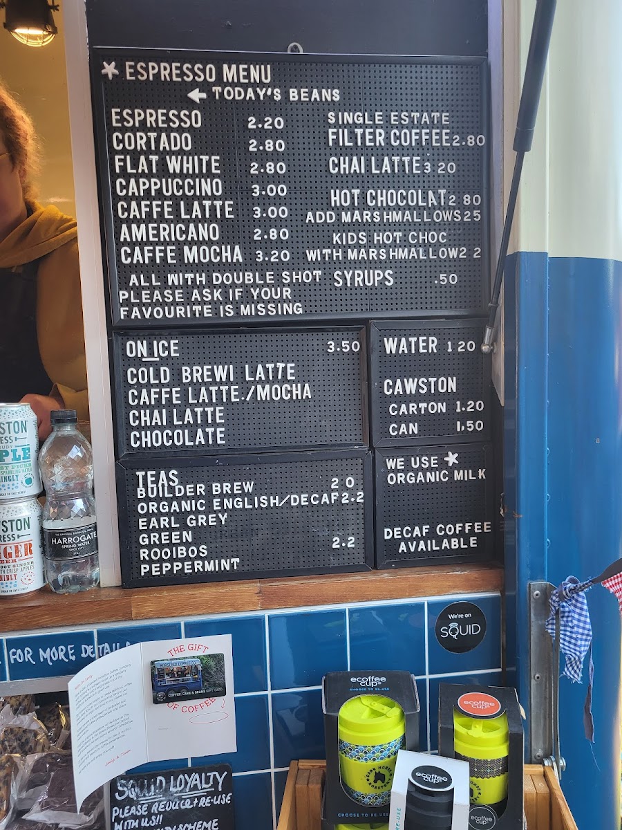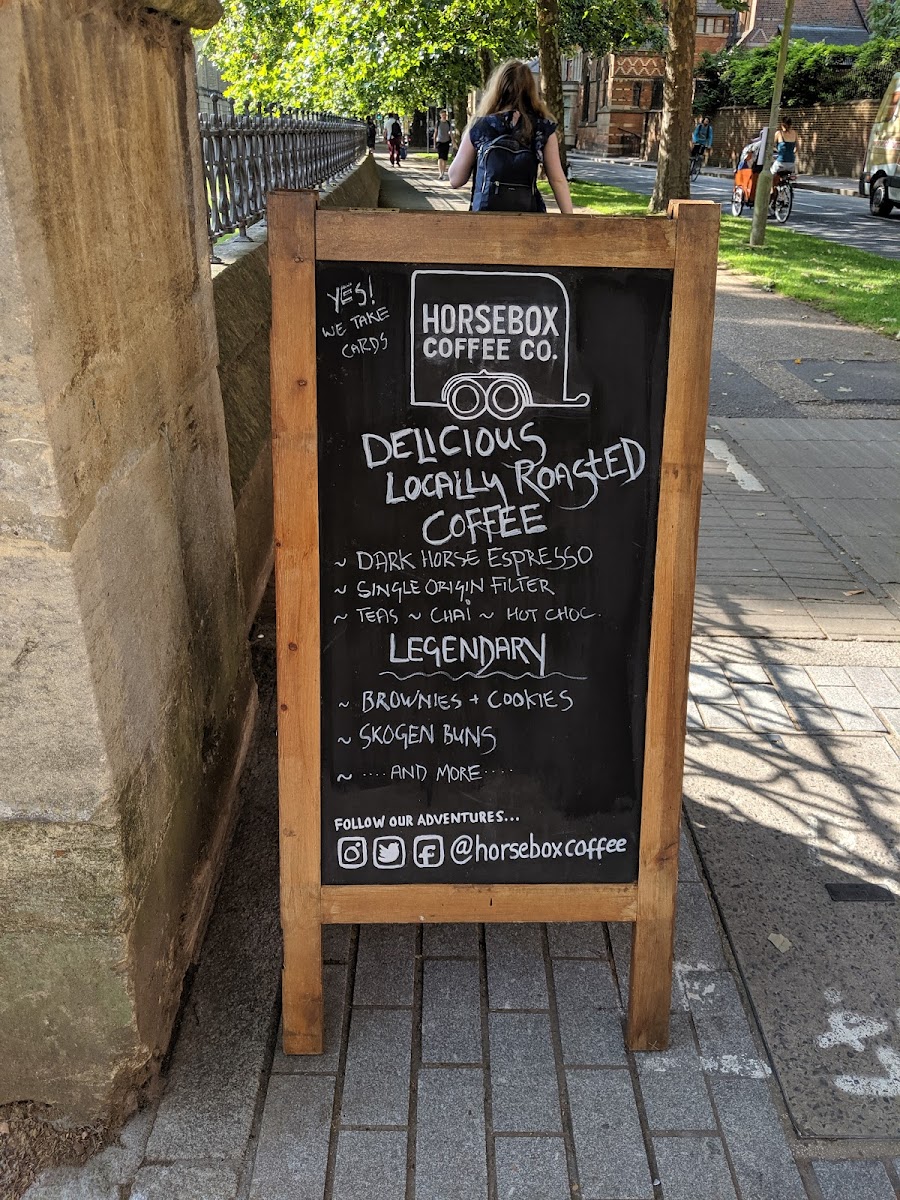 From a reviewer’s perspective, the Horsebox Coffee Co’s menu on Parks Rd is refreshingly straightforward yet thoughtfully varied: espresso‑based classics like Cortado, Flat White, Caffe Latte, Americano and Caffe Mocha anchor the drinks list, while tea lovers can choose from Builder Brew, Organic English Decaf or Earl Grey. For something cooler, the “On Ice” selections highlight Cold Brew Latte, Caffe Latte/Mocha and a spiced Chai Latte. The “Others” section rounds things out with grab‑and‑go options such as Carton, Can and Dark Horse Espresso. Though prices aren’t listed here, the clear focus on quality espresso and a concise range of iced and hot options suggests a menu built for both coffee purists and casual visitors alike.